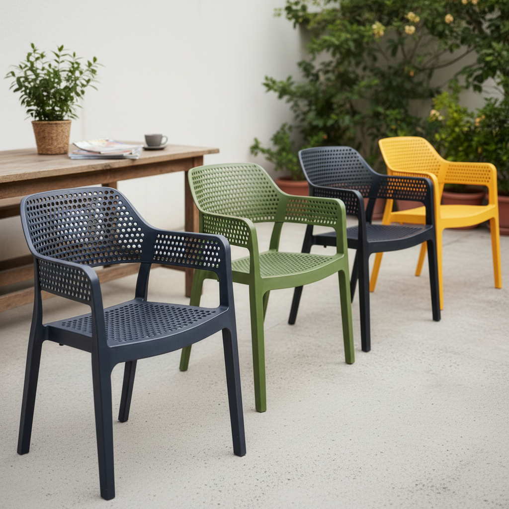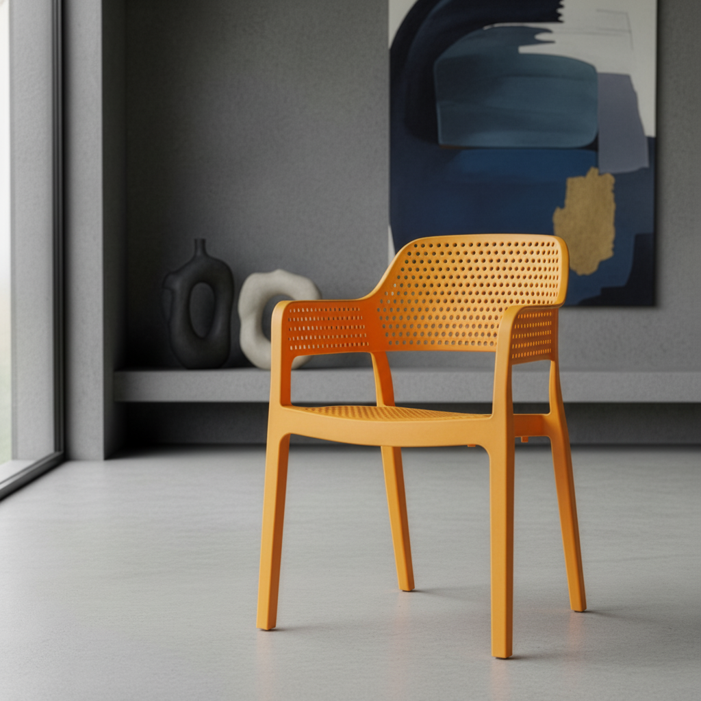 Inspired by the tranquility of island living, Hawaii reimagines the chair as a seamless blend of functionality and artistry. Its perforated design mirrors the gentle flow of ocean waves, while the deep, bold frame evokes both strength and simplicity. Designed for those who seek relaxation without compromising on style, Hawaii transforms any space—be it a sunny patio, a cozy indoor nook, or a bustling café—into a modern retreat. Lightweight yet durable, Hawaii invites you to sit back and let its effortless charm take you on a journey.