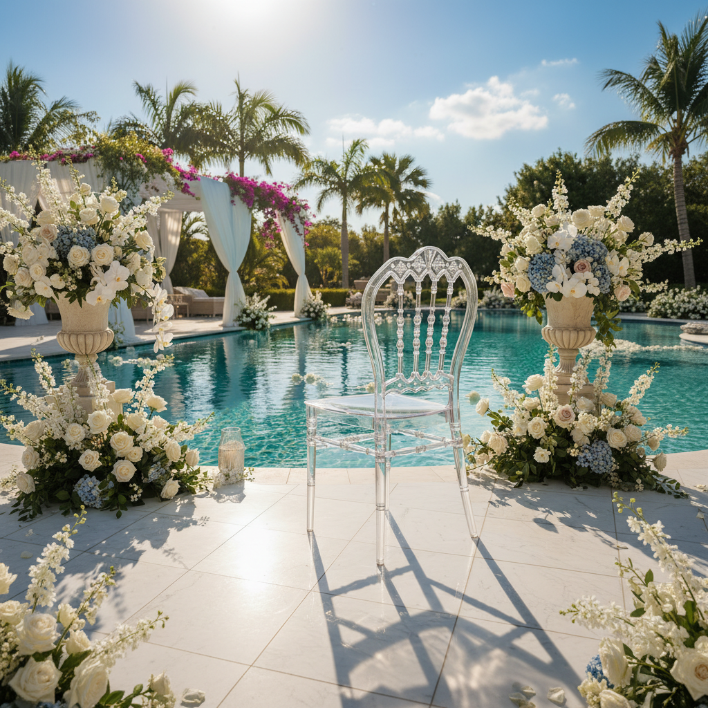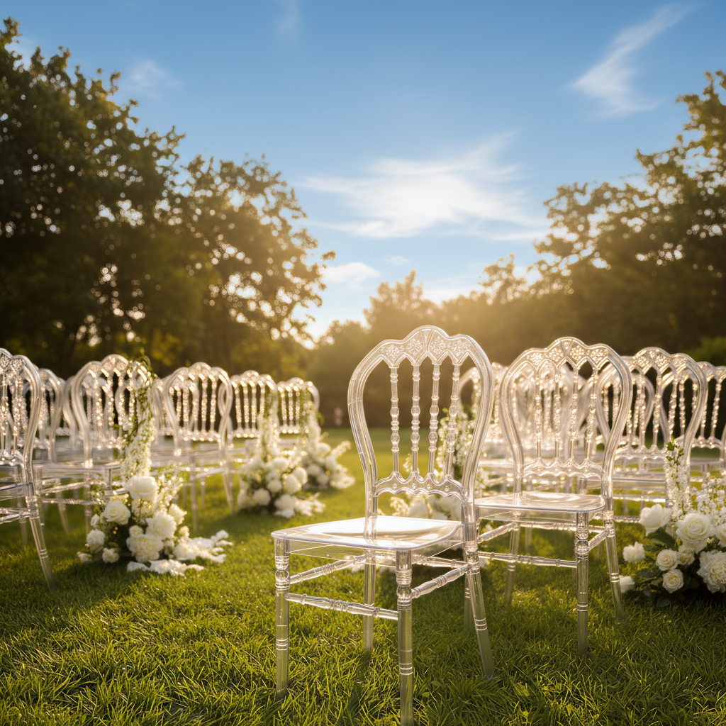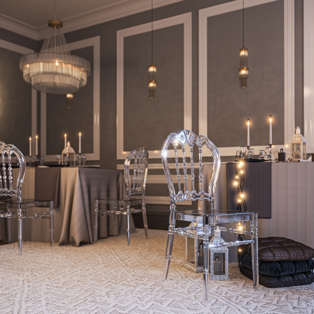 Elevate your events with the Qaisar chair, a regal design crafted to impress. Whether in its classic finish or the stunning transparency of high-quality polycarbonate, Qaisar embodies timeless sophistication. Its intricate detailing and royal silhouette make it the perfect centerpiece for weddings, banquets, and grand celebrations. Designed with durability and style in mind, the transparent polycarbonate version adds a modern twist, blending seamlessly into any luxurious setting.