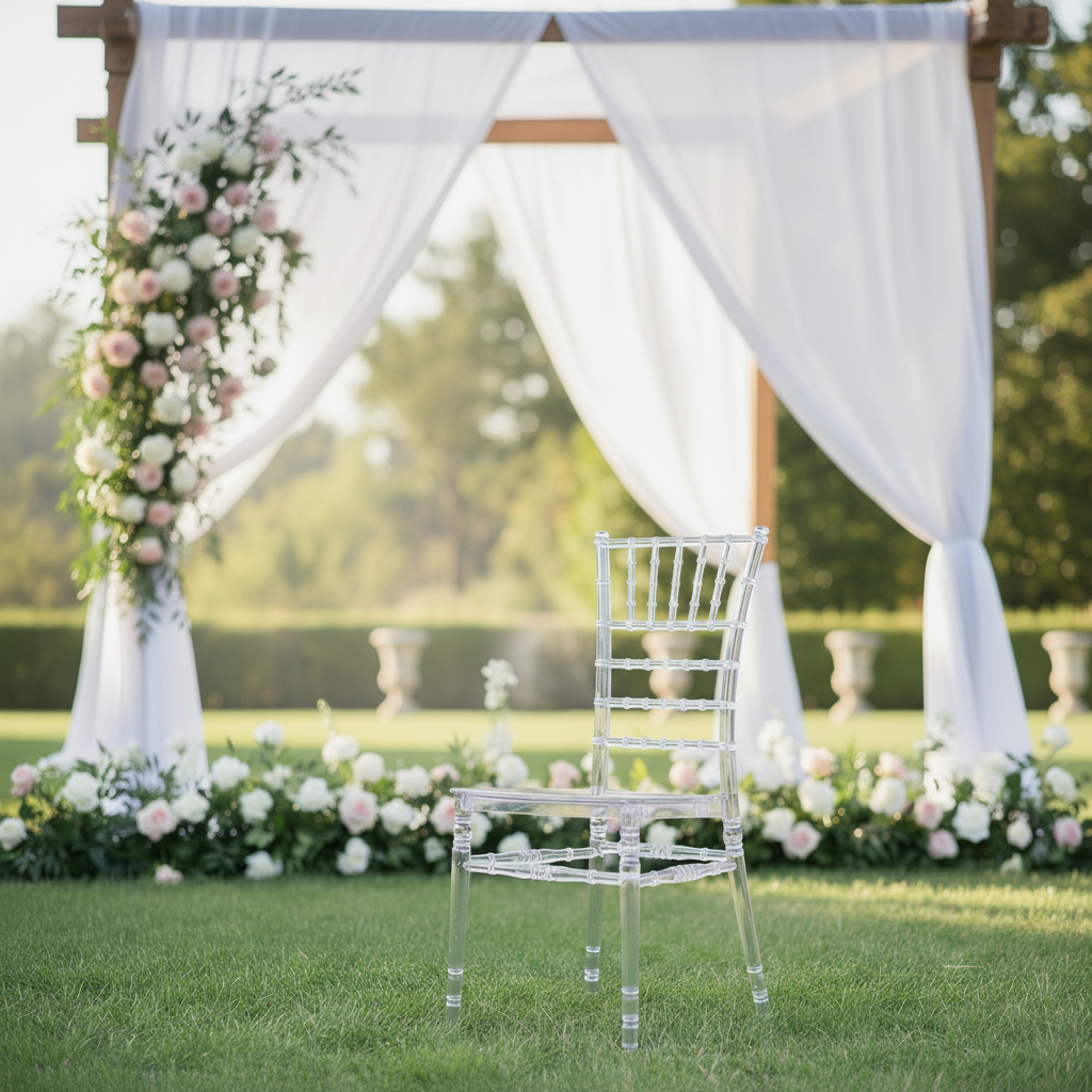 Elevate your events with the Tiffany chair, an iconic design that exudes elegance and charm. From timeless gold and silver finishes to the sleek clarity of transparent polycarbonate, the Tiffany chair offers versatile beauty for any occasion. Its graceful lines and classic silhouette have made it a favorite for weddings, galas, and upscale gatherings worldwide. Crafted for both style and strength, the transparent version adds a contemporary edge while maintaining the refined look that defines every memorable event.