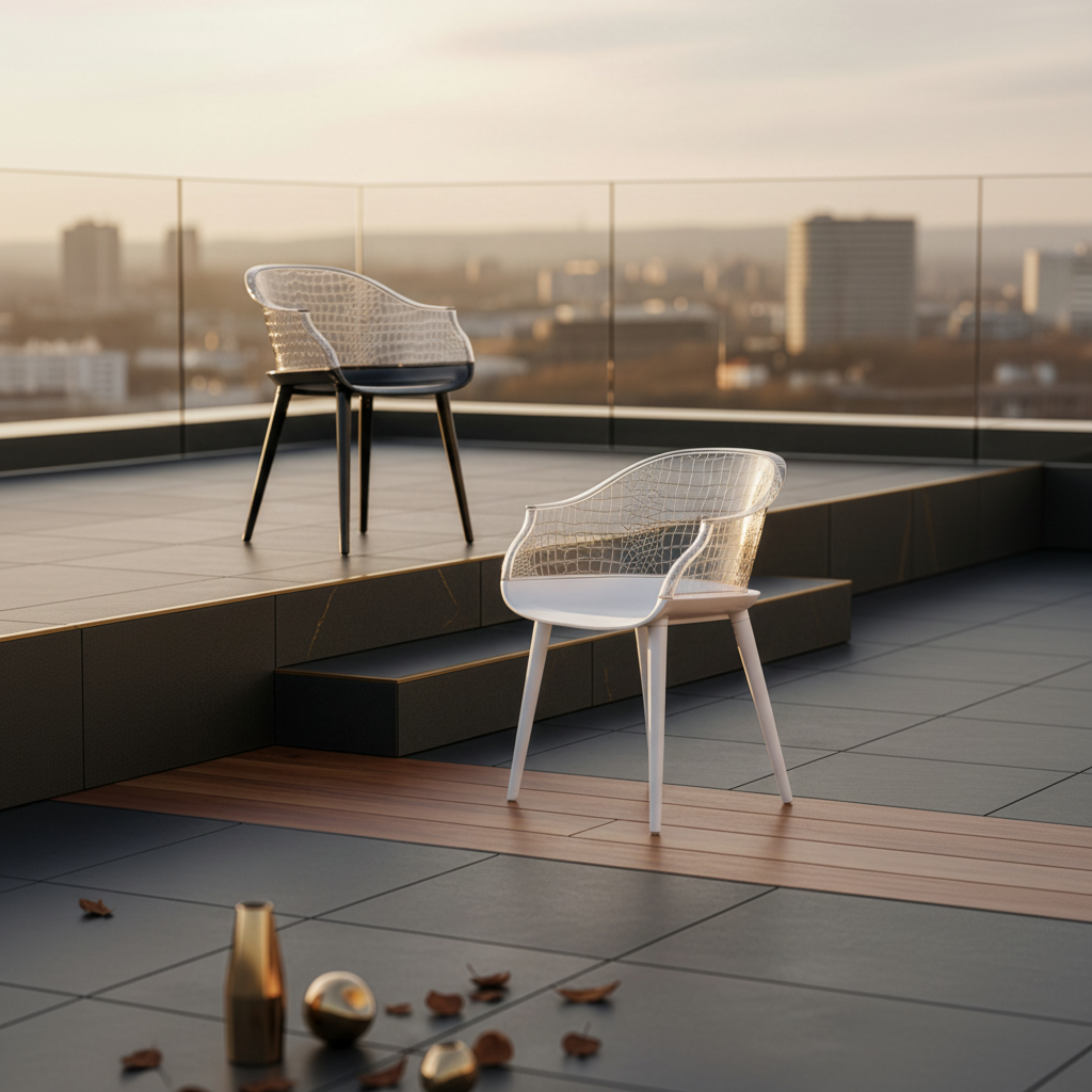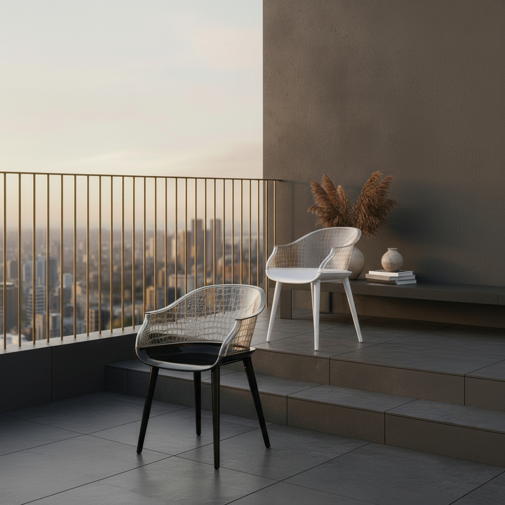 Introducing the Milano Chair, a masterpiece of modern design that elegance with functionality. With its sleek, transparent backrest pattern and a sturdy base, the Milano exudes sophistication while This chair is perfect for contemporary interiors, blending seamlessly areas, offices, or lounges. The Milano is more than just a seat—it’s a style and comfort to any setting.