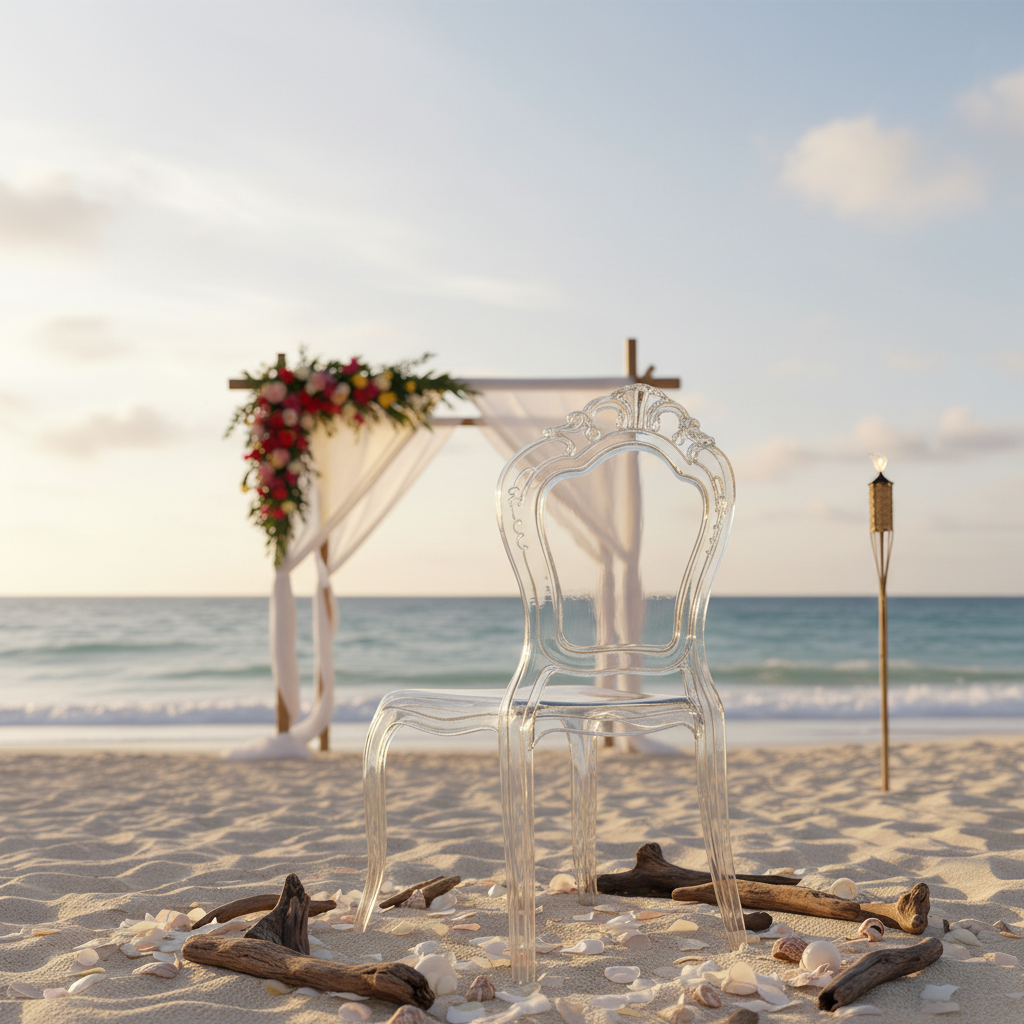 Elevate your events with the Floria chair, a regal design crafted to impress. Whether in its classic finish or the stunning transparency of high-quality polycarbonate, Floria embodies timeless sophistication. Its intricate detailing and royal silhouette make it the perfect centerpiece for weddings, banquets, and grand celebrations. Designed with durability and style in mind, the transparent polycarbonate version adds a modern twist, blending seamlessly into any luxurious setting.